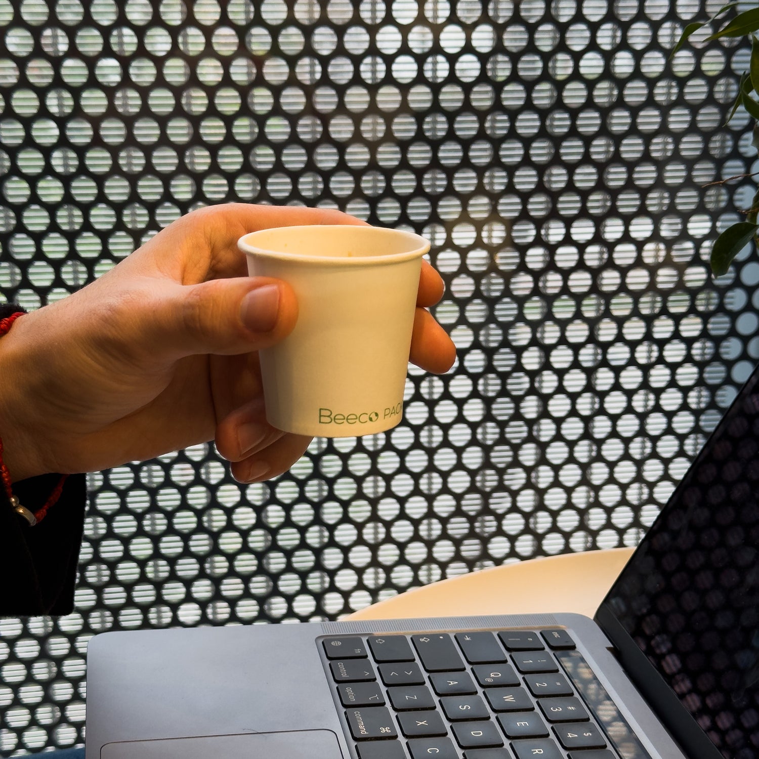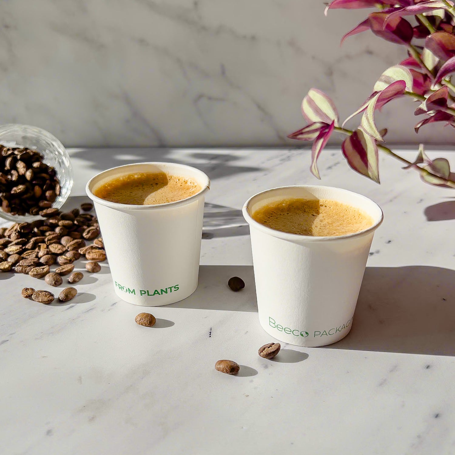 Vaso para líquidos calientes de pared simple diseño Beeco. Para expresso o café de especialidad pequeño y cualquier muestra caliente. Revestimiento interno de PLA (a base de plantas). Comercialmente compostable donde sea aceptado.